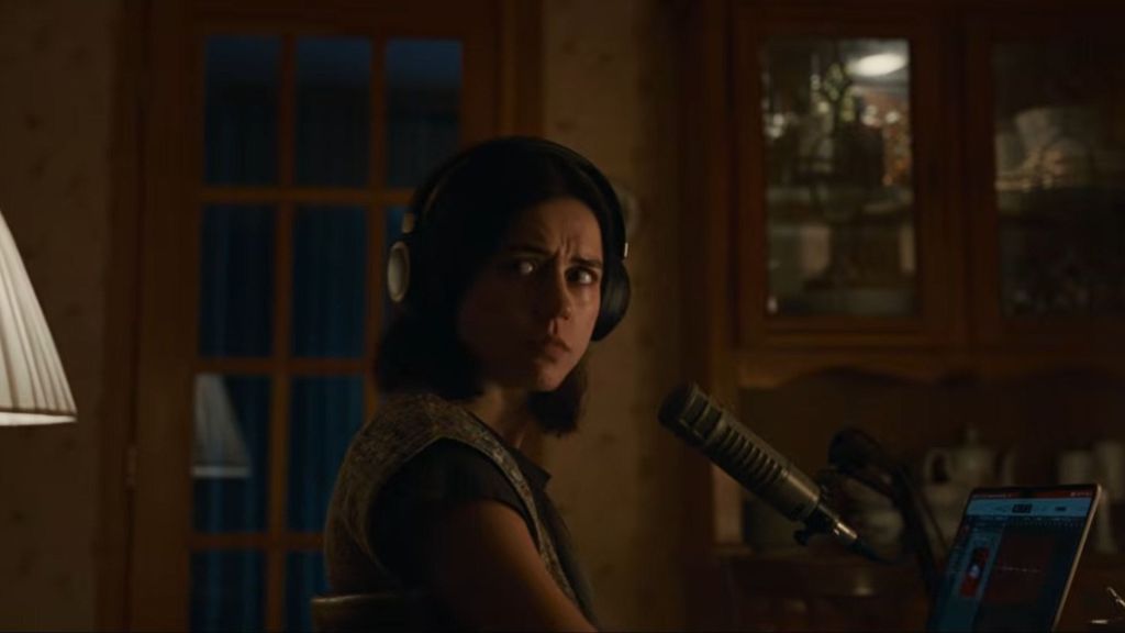 The film takes place solely within the confines of Evy’s mother’s house, with Evy and her mom the only two characters seen on screen. Films like Iron Lung have shown that one-location thrillers with only a few on-screen characters can come off as stale, but undertone finds the most creative ways to keep the film engaging. Evy and her podcast partner, Justin, slowly go through each audio clip, allowing the characters to organically digest what they’ve heard while building a sense of dread. Having a slow build in a movie taking place in one location is often a recipe for disaster, but the film has enough interesting substance that the pacing never drags.